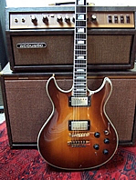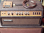 John Entwistle hat diese Teile eine Zeit lang endorsed. Bj. ca. 1969-70. Ein Monster, gigantische Trafos, 4 KT 88 liefern 200W unverzerrten Ton, in Ermangelung derart mächtiger Boxen hab ich das allerdings nicht überprüft. Dickes, orangefarbenes Plexi in bestechender 70er Optik, herrlich. Und damit das auch jeder weiß, steht "Super" drauf...