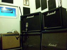 Mikro am richtigen Platz.) In meinem schalldichten Amp-Room können beliebige Amps mit unterschiedlichsten Boxen für unzählige Soundmöglichkeiten kombiniert werden.